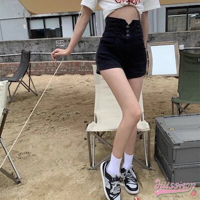 ボトムス パンツ デニム ショート レディース 夏 無地 ハイウエスト 足長効果 おしゃれ 2色展開 カジュアル お出かけ 休日 大きいサイズあり スリム