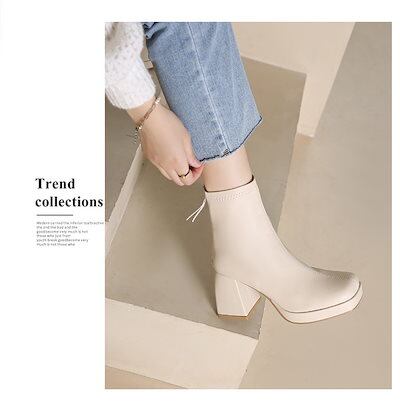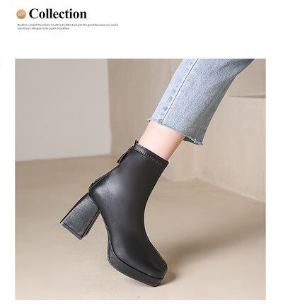 新品 マーティンシューズ 8CM太ヒール 後ファスナー レザーブーツ ショートブール レディース ブーツ メガ割