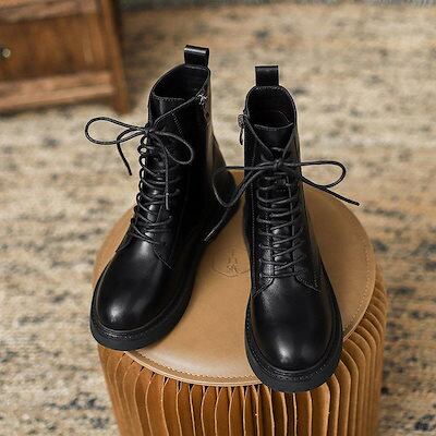 スタイルアップ!ヒールパンプス ローファー ロングブーツが復活!ショートブーツ 英国風ブラウンカレーカラーのマーチンブーツファスナー付き厚底フラットショートブーツ