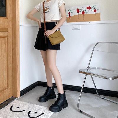 厚底シューズ インソール英国風マーチンブーツレディースショートブーツ2023新作春秋シングルブーツ