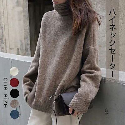 セーター プルオーバー レディース ハイネック カジュアル 長袖 ニットセーター リブ トップス プルオーバーセーター 秋冬 無地 ゆったり ふんわり
