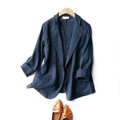 ジャケットレディーススーツテーラードビジネスオフィスカジュアルフォーマル麻調麻リネンリネンタッチ秋用秋サマー涼しい軽量洗えるウオッシャブルショート丈七分袖リネン調7分袖テーラー1ボタンジャケット