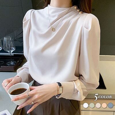 ブラウスレディーストップスシャツインナースーツインナービジネススーツ秋長袖ハイネックプチハイネック飾りボタン付きオフィスカジュアルフォーマル上品体型カバー小顔効果通勤オフィスお呼ばれ入園式入学式卒業式