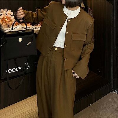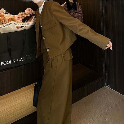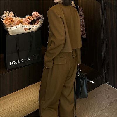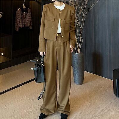 セットアップ レディース パンツスーツ 2点セット パンツドレス 上下 きれいめ ハイウェスト スーツ ママスーツ 無地 シンプル ゆったり お洒落 体型カバー フォーマル デート 普段使い 結婚式