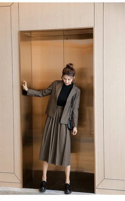 セットアップ スカートスーツ レディース スーツ フォーマル プリーツスカート&テーラードジャケット ゆったり ロングスカート 2点セット 長袖 エレガント 通勤 OL 女性 オフィス 事務所 大きい