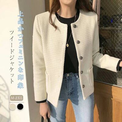 ツイード ジャケット ノーカラー ジャケット レディース セレモニージャケット 通勤 ショート丈 スーツ ママスーツ おしゃれ フォーマル 発表会 結婚式 母 OL 入学式 入園式 卒園式 卒業式 3