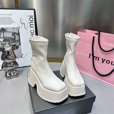 【3日以内出荷】厚底シューズ ブーツ 韓国スポンジ底マーティンブーツ 防水プラットフォーム厚底ショートブーツレディース ファッション