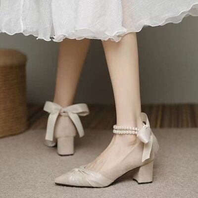 2024 春夏 シューズ スタイルアップ!ヒールパンプス ハイヒールで疲れないレトロなダッドヒール日常の通勤に白のミドルヒール パンプス ミュールサンダル レディース 美脚 脚やせ 歩きやすい