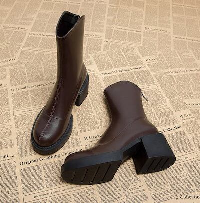 ロングブーツ 厚底シューズ 2024ママチャリブーツ子供の秋冬新作ハイヒールショートブーツ女性の春秋シングルブーツショートブーツ レディース ブーティー マーディンブーツ