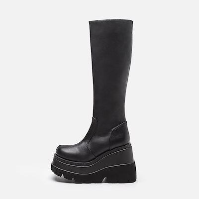 ロングブーツ 厚底シューズ ショートブーツ レディース 厚底長靴機関車ライダーブーツ膝を通さない大頭スリムブーツ女 ブーティー マーディンブーツ