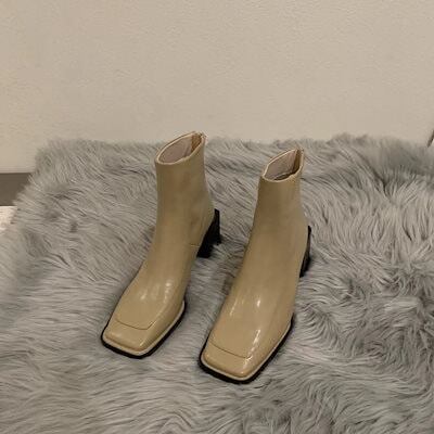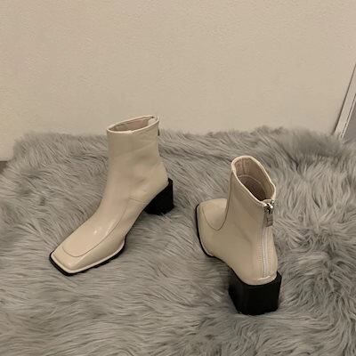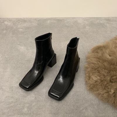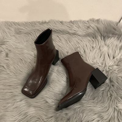 ショートブーツ 韓国ファッション ブーツ ーシューズ ショット丈ブーツ ヒール 美脚 ミドルカットョート ブーツ スクエア靴 黒 調靴 歩きやすい ミドルヒール 太ヒール