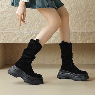 ショートブーツ 韓国ファッション 新作 気質 新品厚底ショートブーツマーティンブーツレディース防水プラットフォームつや消しスモールハーフブーツスポンジケーキミディアムチューブ