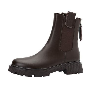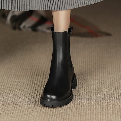 ショートブーツ 韓国ファッション 新作 気質 厚底ショートブーツ秋冬プラスベルベットシングルブーツフラットソールチムニーマーティンブーツ