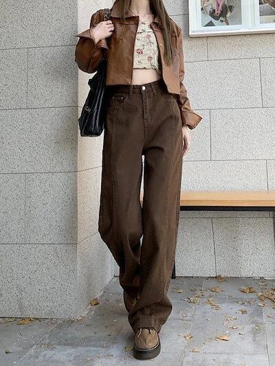 デニムパンツ レトロ ジーンズ レディース ハイウエスト ゆったり ストレート ワイドパンツ 秋 かっこいい!スラックスパンツ コーデュロイパンツ