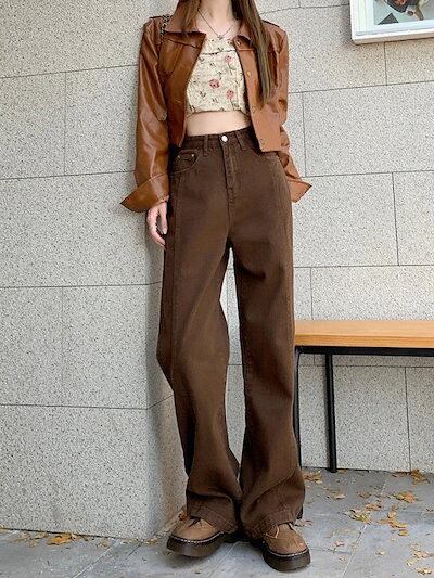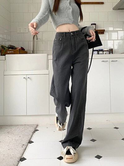 ひんやりボトムス レトロ ジーンズ レディース ハイウエスト ゆったり ストレート ワイドパンツ 秋 かっこいい!スラックスパンツ コーデュロイパンツ