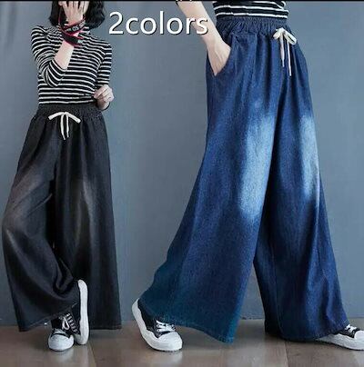 大きいサイズ フレアパンツ 夏 デニム スカーチョ バギーパンツ ボトムス ゆったり 体型カバー レディース ガウチョパンツ パンツ カジュアル 秋 ワイドパンツ ロング ワイド 春