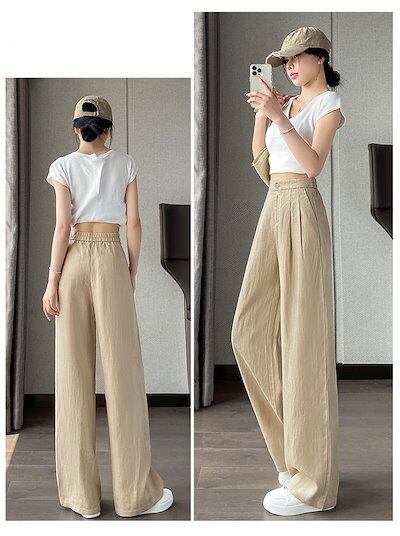 ワイドパンツ リネン ひんやり 接触冷感 夏 薄手 パンツ レディース カジュアル ゆったり リラックス シンプル 快適 きれいめ 無地 楽ちん 体型カバー ハイウエスト 美脚 着?せる ナチュラル