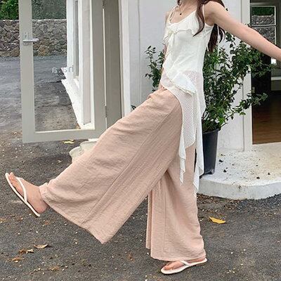パンツ レディース ワイドパンツ ロング丈 マキシ丈 ボトムス 春 夏 秋 無地 ガウチョパンツ スカーチョ フレアパンツ ウエストゴム 綿 コットン ゆったり ポケット付き カジュアル 快適 リラッ
