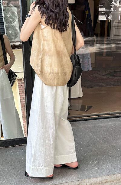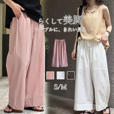 パンツ レディース 夏 薄手 ワイドパンツ きれいめ ストレートパンツ ズボン 長ズボン ボトムス チノパンツ ウエストゴム リラックス シンプル ゆったり カジュアル ストレート 20代 30代 4