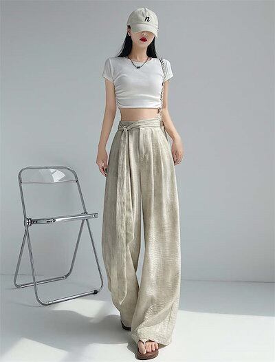 ワイドパンツ レディース ガウチョパンツ イージーパンツ 夏 秋 春 柄パンツ プリント リラックス ウエストゴム 薄手 涼しい ひんやり 冷感 ロング丈 リボン付き 体型カバー シンプル リゾート