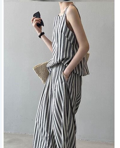 セットアップ レディース 夏 2点セット 薄手 上下セット キャミソール ワイドパンツ イージー フレアパンツ 涼しい カジュアル ナチュラル 大きいサイズ ゆったり 体型カバー ふんわり 爽やか ス