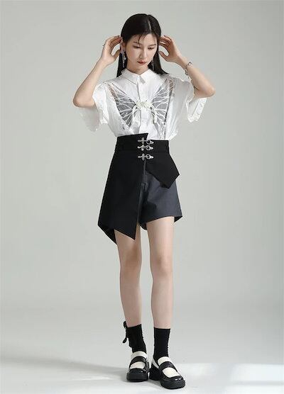 【J.Fashion】 ミニパンツ ワイドパンツ 夏 ドッキング 不規則 ハイウエスト スラックス ショートパンツ カジュアル レディース おしゃれ 上質 関連商品は店で購入可能 メガ割