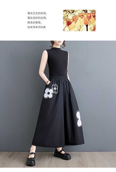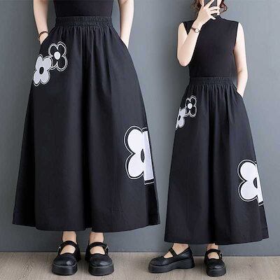 「ファットガール」 キュロットスカート 花柄 九分丈 ワイドパンツ ゴム 体型カバー 大きいサイズ ゆったり レディース