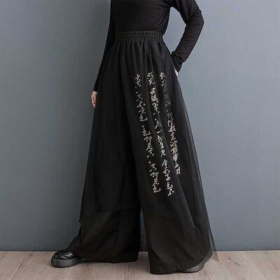 「ファットガール」 2024春新品 キュロットスカート チュール ワイドパンツ シフォン 古風 中華風 ドッキング 体型カバー レディース ロングパンツ