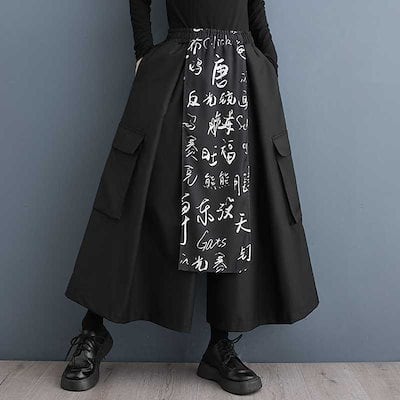 「ファットガール」 2024春夏 キュロットスカート 中華風 ワイドパンツ 大きいポケット レディース ロングパンツ