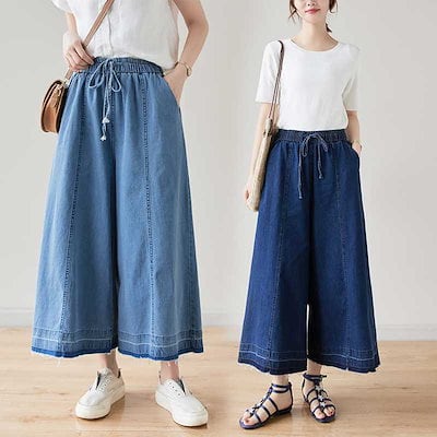 「ファットガール」 夏 フレアパンツ デニム キュロットスカート ワイドパンツ 体型カバー 大きいサイズ ゆったり レディース