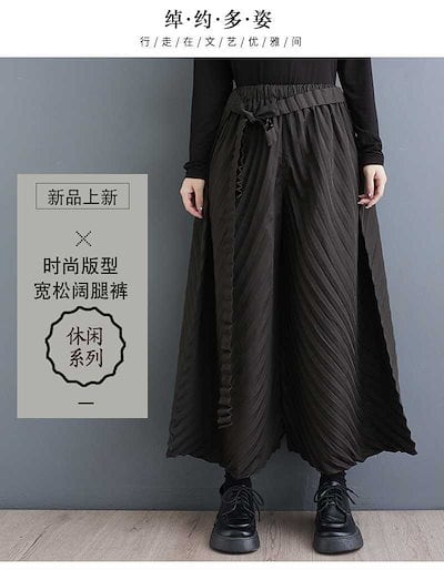 「ファットガール」 2024春新品 キュロットスカート ワイドパンツ 皺デザイン ゴムウエスト 大きいサイズ 体型カバー レディース ロングパンツ