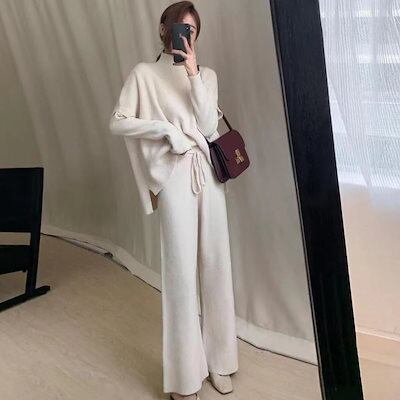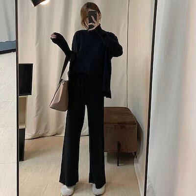 セットアップ 上下セット レディース 3点セット パンツセット ニット 秋 春 冬 ベスト