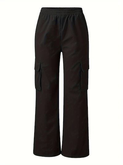 MPFA ソリッドカラーのフラップポケットストレートレッグパンツハイウエストカジュアルワイドレッグカーゴパンツレディーススウェットパンツ【MPFA24100290】