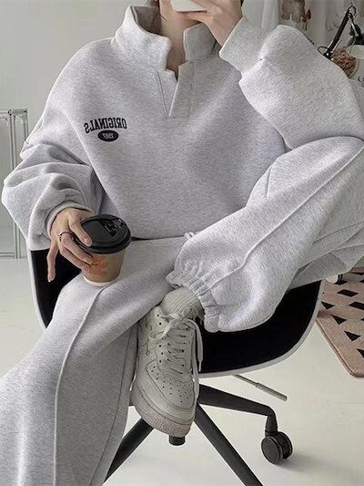 23人気ブランドスウェットセットアップ上下二点肌にやさしい綿長袖立ち襟アウター無地スウェットパンツ韓国ファッションレディース服トレーニングウェアスポーツウェアレディース