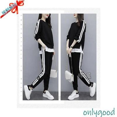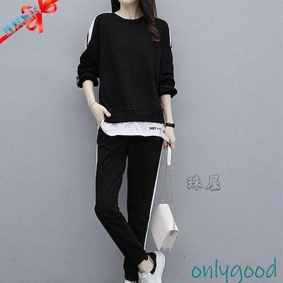 ジャージ レディース セットアップ スウェット 上下セット 部屋着 ルームウェア 春秋 長袖 パンツ 重ね着風 トレーニング スポーツウェア カジュアル おしゃれ