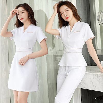 大人気 セットアップ ユニフォーム エステ サロン通勤 レディース 女性 制服 美容院通勤 ワンピース半袖 七分袖 ジャケット 上下セット エステ制服