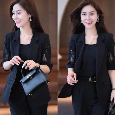 3点セット スーツ セットアップ レディース 夏 プロ用スーツ女性2024新作スリムパンツスーツ薄見え 韓国 半袖 ルームウェア 涼しく楽ちんセットアップ スウェット上下セット