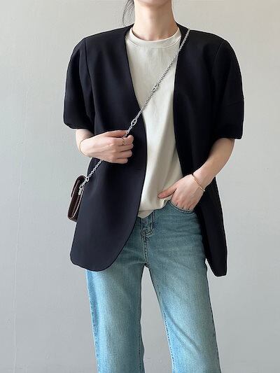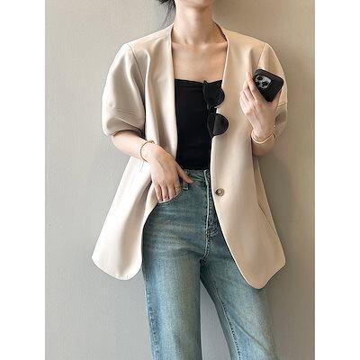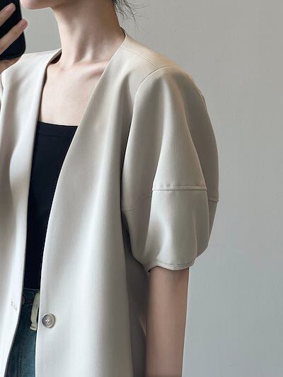 2024 夏 薄 スーツ パフスリーブ半袖スーツジャケット女性用 春夏薄手カジュアル半袖スーツ レディース 韓国ファッション半袖