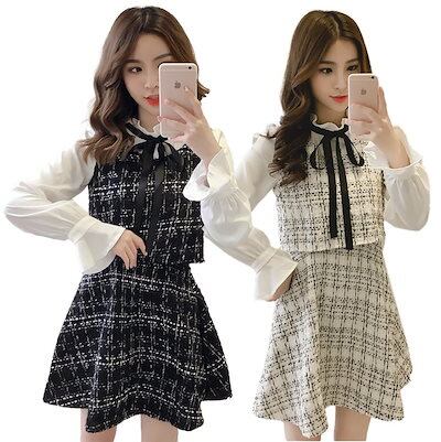 ブラウスコンビツイード ワンピース 量産型 ブラック ホワイト 量産女子 レディース 可愛いu300