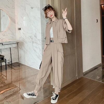 涼しく楽ちんセットアップ トレンドデザインレディースジャケット カーゴパンツ 2点セットchicレディーススーツ 人気