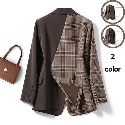 ジャケット 春アウター スーツジャケッ チェック ブレザー レディース 春秋 テーラードジャケット 切り替え アウター カジュアルレトロ アウター ?国ファッション