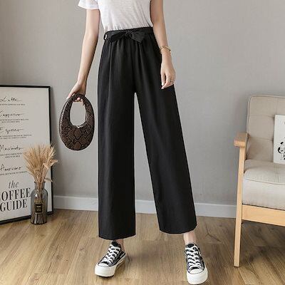 かっこいい!スラックスパンツ 接触冷感ボトムス 脚長効果!スキニーパンツ 韓国ファッション 夏 日系無地 シンプルズボン レディース ゆったり百掛けワイドパンツ ハイウエスト カジュアル リネンパ 福