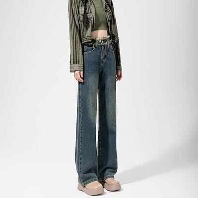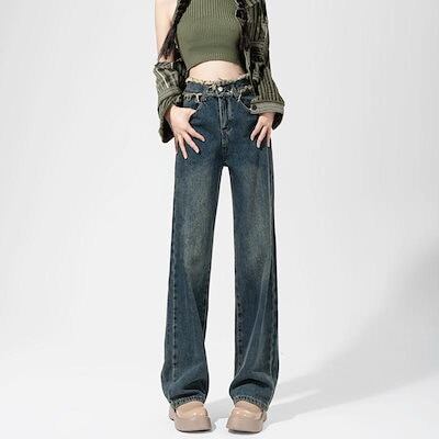 2024新作 流行り デニムパンツ ハイウエスト ワイドパンツ ジーンズ レディース レトロ ゆったり ズボン脚長効果!スキニーパンツ ワイドパンツ スラックスパンツ デニムパンツ