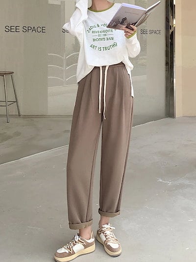 テーパードパンツ ベージュ ハーランパンツ レディース 2024春秋新作 ハイウエスト カジュアル 小さい キャロット・パンツ 薄手 韓国ファッション