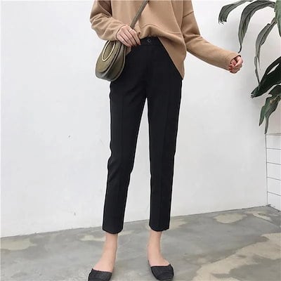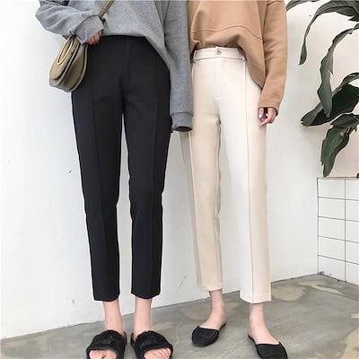 パンツレディーススラックスタックテーパードパンツ脚フルレングス無地細身ストレートパンツスーツパンツ母の通勤春九分丈