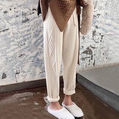 ズボン本パンツロングパンツ 2023 秋 冬 ファッション ニットパンツ 秋 冬 ストレッチ ツイスト ハイウエスト ゆったり ハーレムパンツ レディース防寒 スラックスパンツ おしゃれ ズボン 韓国