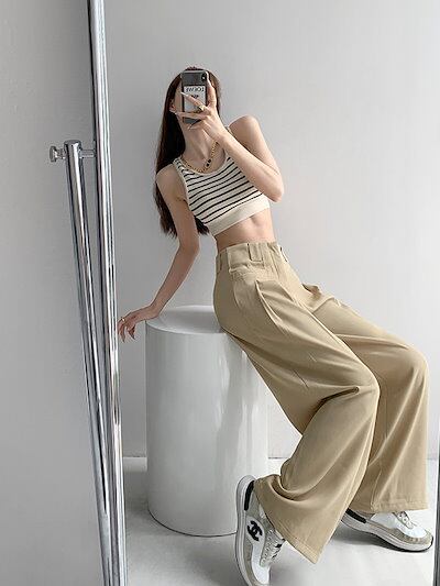 人気スラックスパンツ韓国新作 2023 新作 春秋 スーツズボン モップパンツ ドレープ感
