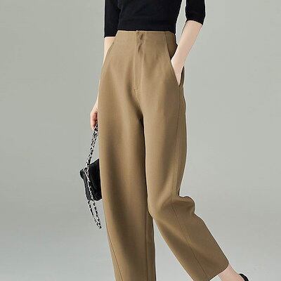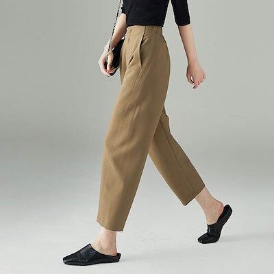 テーパードパンツ ポケット付き きれいめ きれいめ スラックス 楽ちん ツイル クロップドパンツ レディース 九分丈 ウェストゴム パンツ 体型カバー 立体 春 秋 オールシーズン カーブパンツ