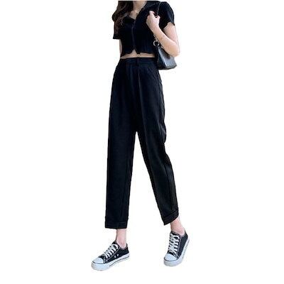 テーパードパンツ レディース スラックス ロングパンツ 九分丈 美脚 ゴムウェスト ハイウェスト きれいめ ボトムス フォーマル オフィス シンプル 大きいサイズ S-3XL