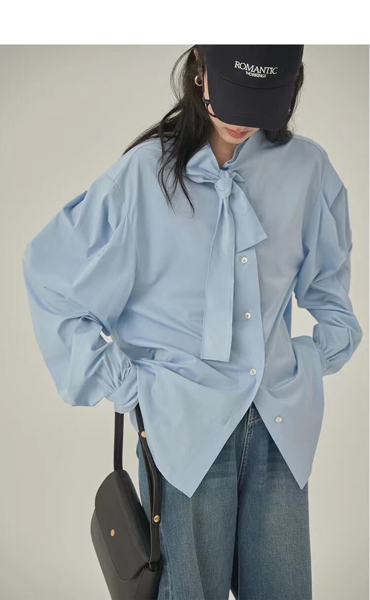 今年売れてます 文芸 蝶ネクタイ おしゃれな シャツ 雰囲気 早春 上着 ブラウス 肌にやさしい 気質